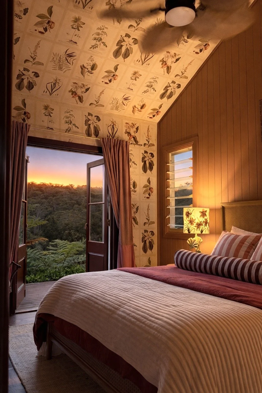 Blue Fig Cottage is a beautifully redesigned two-bedroom Queenslander-style retreat with uninterrupted forest and lily pond views, offering a secluded and peaceful escape at Nightcap Ridge.